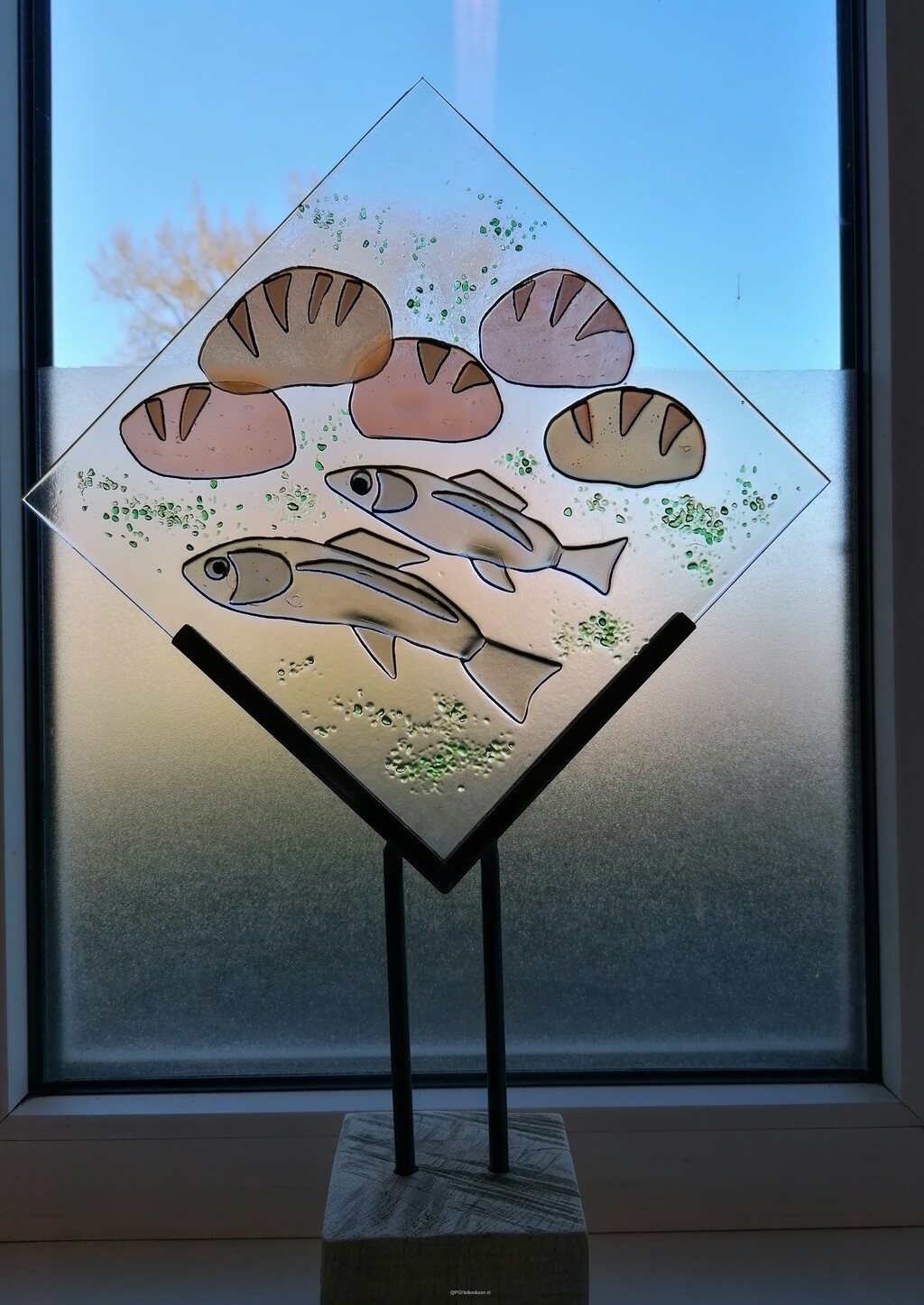 Deze glaskunstwerkjes worden dit jaar in de Schaapskooi getoond. In het dorp zien we de foto’s.